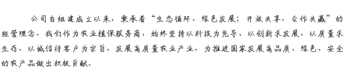 以国家产业政策为导向,,,尊龙时凯肥业公司加大投资力度,,,开拓新市场,,成立了控股子公司河北尊龙时凯生态科技有限公司。。。。业务涉及开发及兼并畜禽粪污资源化利用项目,,,功能性肥料的研发与销售,,,公司为广大农户、、农业基地提供病虫害防治、、、农膜回收、、农业技术开发、、、农业技术服务、、、技术咨询、、基于物联网和大数据的智慧农业建设等一揽子解决方案。。。。以省会石家庄为中心,,,,面向华北,,,,发展特色农业种植和高质量农业产业,,打造新生态循环,,立志成为农业植保综合解决方案的一流企业,,,,为推进国家发展高品质、、、、绿色、、、安全的农产品做出积极贡献。。。